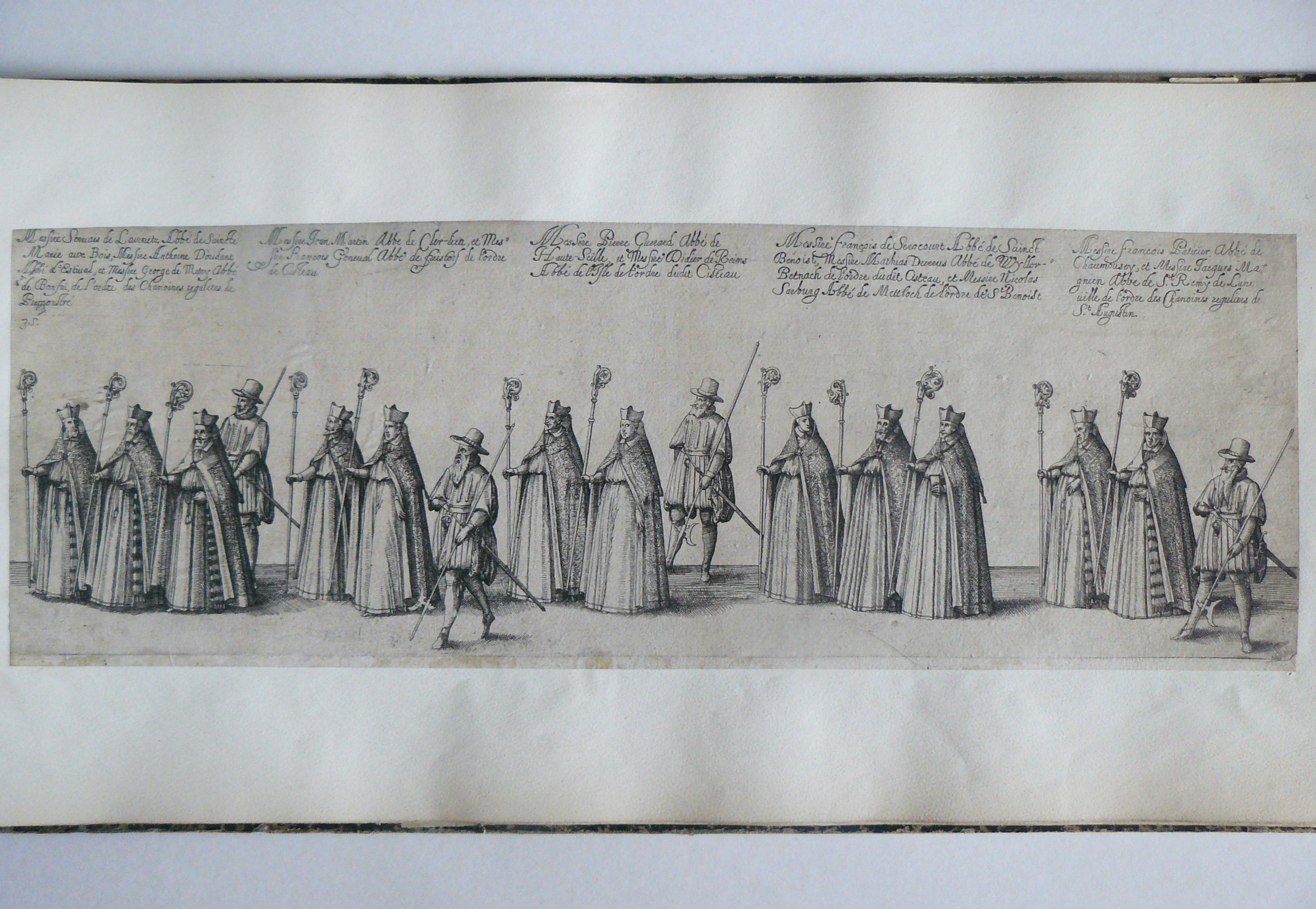 Cette planche représente le défilé des abbés de Sainte-Marie-aux-Bois, Clairlieu, Prémontré, Cîteaux, etc.