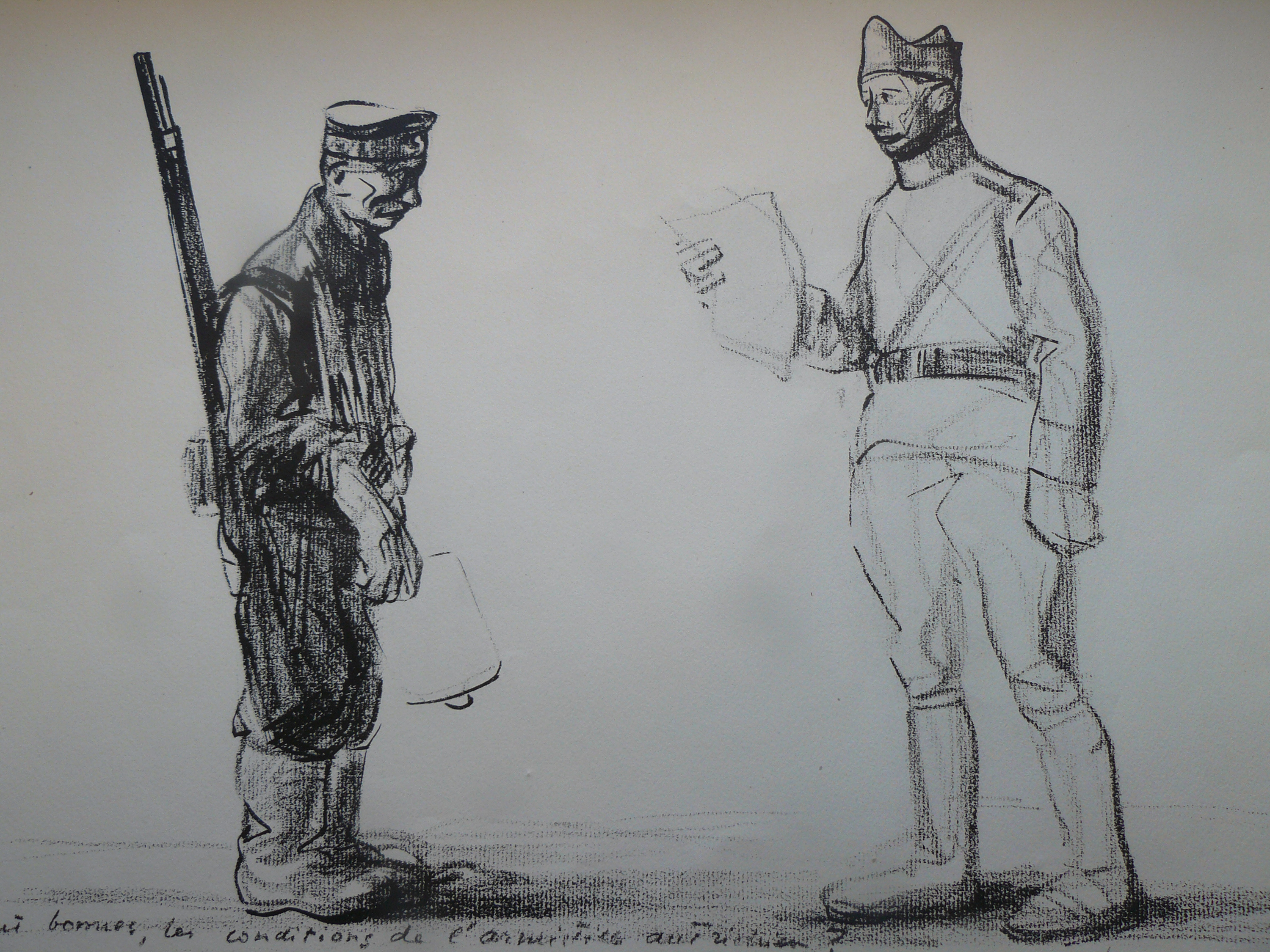Sous les personnages est écrit : « Elles sont bonnes, les conditions de l'armistice autrichien ? — Fraîches et joyeuses. »